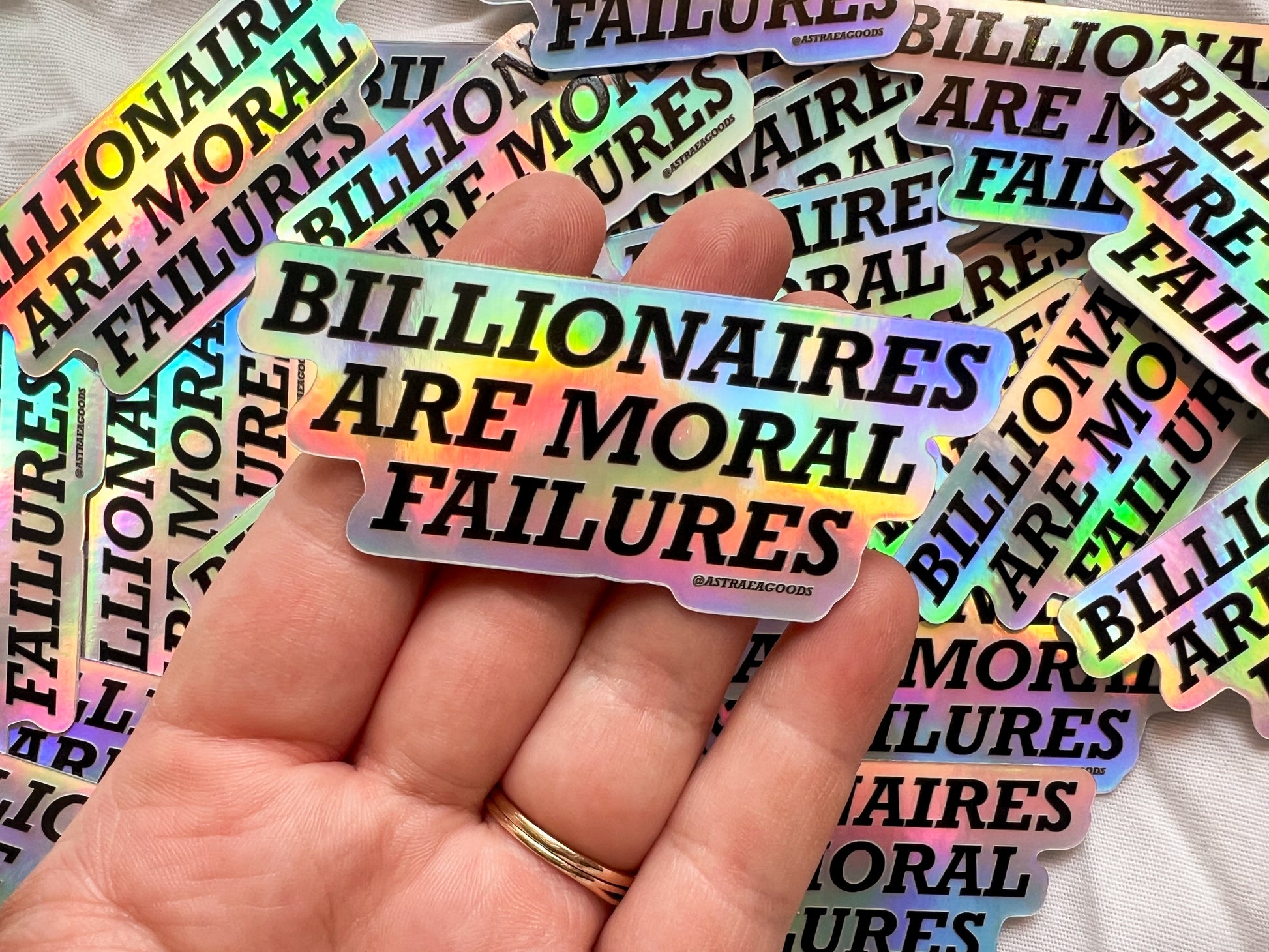 billionaires are moral failures holographic sticker