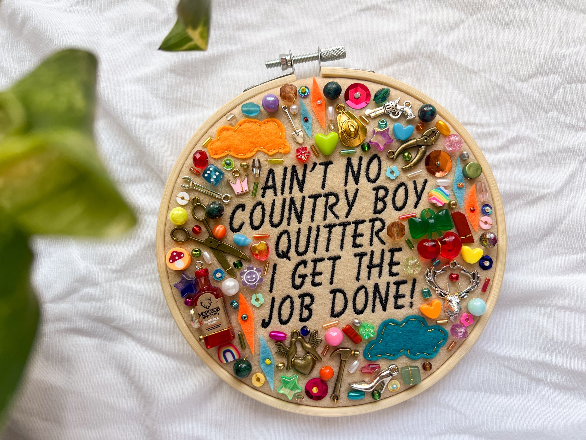 these will arrive in time for the holidays! itโs for a 6โ embroidery hoop, and you can pick any song/lyric/quote, along with background color, general color scheme, specific charm themes, and font style. after purchasing, iโll send you a link to a google form so I can get all of those details from you to make a super fun custom piece!ย